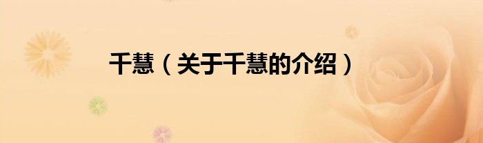 千慧(关于千慧的介绍)