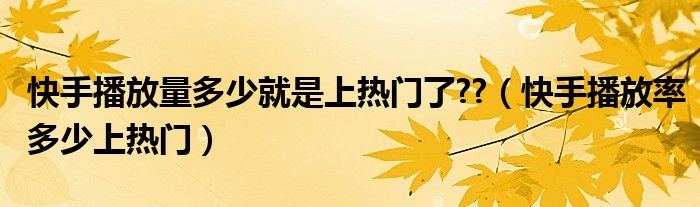 大家好,小晋来为大家解答以下问题,关于快手播放量多少就是上热门了??,快手播放率多少上热门很多人还不知道,今天让我们一起来看看吧!