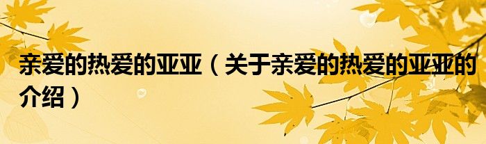 大家好,小都来为大家解答以上的问题。亲爱的热爱的亚亚,关于亲爱的热爱的亚亚的介绍很多人还不知道,现在让我们一起来看看吧!