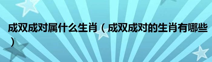 大家好,小晋来为大家解答以下问题,关于成双成对属什么生肖,成双成对的生肖有哪些很多人还不知道,今天让我们一起来看看吧!