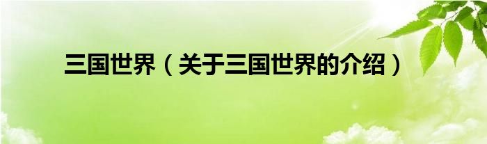 大家好,小都来为大家解答以上的问题。三国世界,关于三国世界的介绍很多人还不知道,现在让我们一起来看看吧!