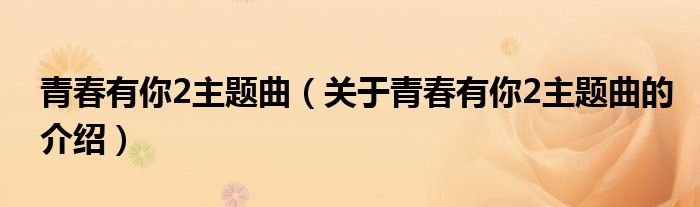 大家好,小都来为大家解答以上的问题。青春有你2主题曲,关于青春有你2主题曲的介绍很多人还不知道,现在让我们一起来看看吧!