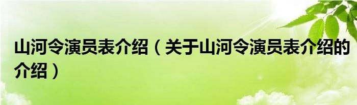 大家好,小都来为大家解答以上的问题。山河令演员表介绍,关于山河令演员表介绍的介绍很多人还不知道,现在让我们一起来看看吧!