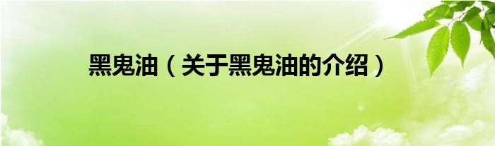 黑鬼油(关于黑鬼油的介绍)