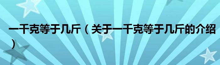 一千克等于几斤(关于一千克等于几斤的介绍)