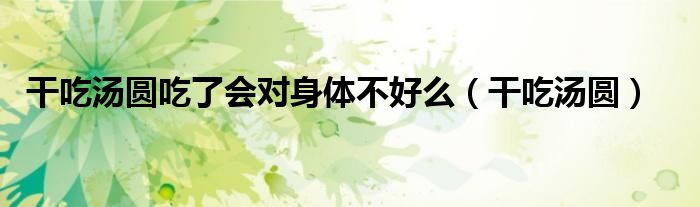 大家好,小晋来为大家解答以下问题,关于干吃汤圆吃了会对身体不好么,干吃汤圆很多人还不知道,今天让我们一起来看看吧!