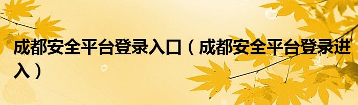 大家好,雨雨来为大家解答以上问题,成都安全平台登录入口,成都安全平台登录进入很多人还不知道,现在让我们一起来看看吧!