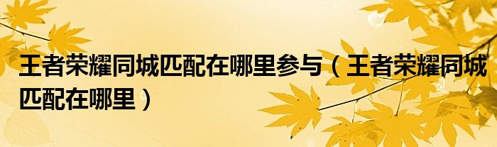 大家好,雨雨来为大家解答以上问题,王者荣耀同城匹配在哪里参与,王者荣耀同城匹配在哪里很多人还不知道,现在让我们一起来看看吧!