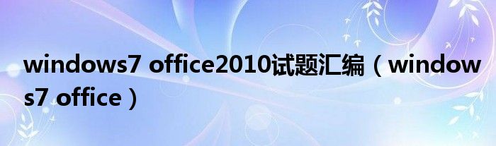 windows7 office2010试题汇编(windows7 office)