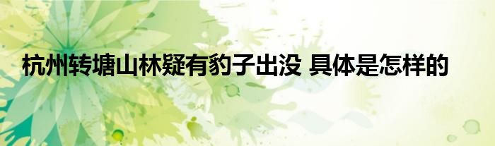 2、【杭州转塘山林疑有豹子出没】近日,有群众报警称在转塘街道龙门坎村山林发现一只疑似豹子的猫科动物,目前杭州野生动物园、森林公安以及农业部门都在现场寻找中。