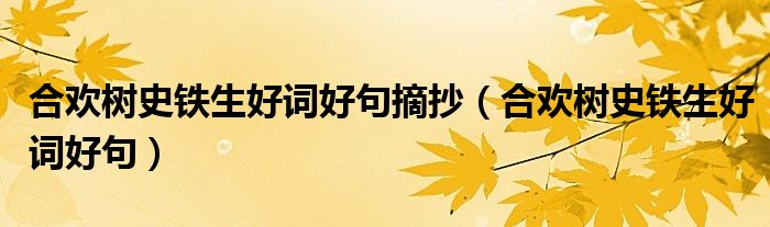关于合欢树史铁生好词好句摘抄,合欢树史铁生好词好句这个很多人还不知道,今天菲菲来为大家解答以上的问题,现在让我们一起来看看吧!