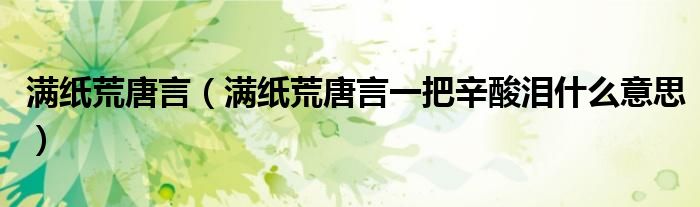 1、满纸荒唐言,一把辛酸泪的意思是看起来满篇都是荒唐的言辞,字里行间浸透着辛酸的眼泪。