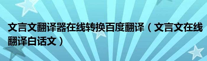关于文言文翻译器在线转换百度翻译,文言文在线翻译白话文这个很多人还不知道,今天菲菲来为大家解答以上的问题,现在让我们一起来看看吧!