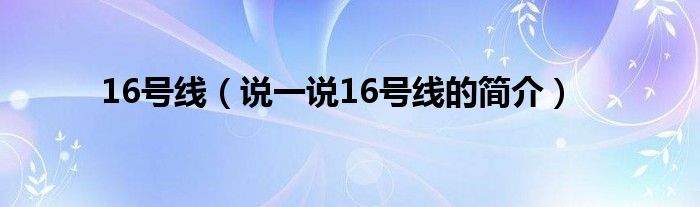 夏弥来为大家解答以下的问题,16号线,说一说16号线的简介,现在让我们一起来看看吧!