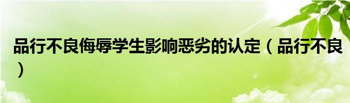 关于品行不良侮辱学生影响恶劣的认定,品行不良这个很多人还不知道,今天菲菲来为大家解答以上的问题,现在让我们一起来看看吧!
