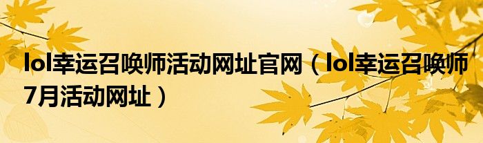 大家好,小小来为大家解答以下问题,lol幸运召唤师活动网址官网,lol幸运召唤师7月活动网址很多朋友还不知道,现在让我们一起来看看吧!