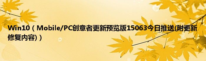 大家好,综合小编来为大家讲解下Win10,Mobile/PC创意者更新预览版15063今日推送(附更新修复内容)这个很多人还不知道,现在让我们一起来看看吧!