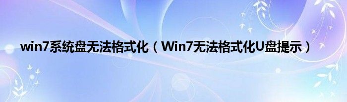 大家好,综合小编来为大家讲解下win7系统盘无法格式化,Win7无法格式化U盘提示这个很多人还不知道,现在让我们一起来看看吧!