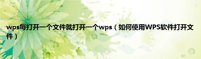 大家好,综合小编来为大家讲解下wps每打开一个文件就打开一个wps,如何使用WPS软件打开文件这个很多人还不知道,现在让我们一起来看看吧!