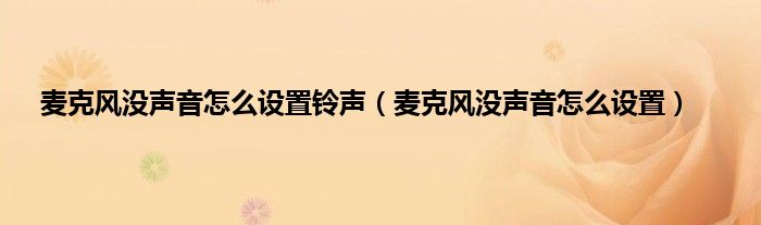 大家好,综合小编来为大家讲解下麦克风没声音怎么设置铃声,麦克风没声音怎么设置这个很多人还不知道,现在让我们一起来看看吧!
