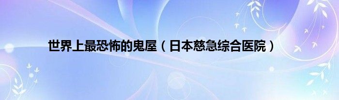 本文世界上最恐怖的鬼屋,日本慈急综合医院到此分享完毕,希望对大家有所帮助。
