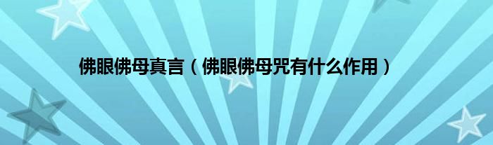 大家好,综合小编来为大家讲解下。佛眼佛母真言,佛眼佛母咒有什么作用这个很多人还不知道,现在让我们一起来看看吧!