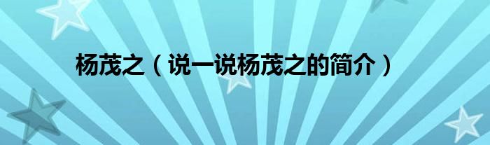 杨茂之(说一说杨茂之的简介)