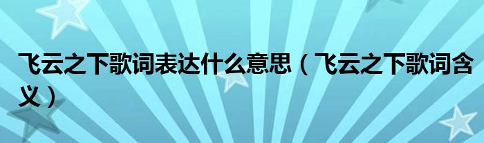 大家好,小联来为大家解答以上的问题。飞云之下歌词表达什么意思,飞云之下歌词含义这个很多人还不知道,现在让我们一起来看看吧!