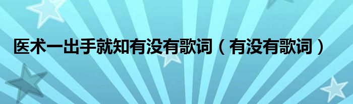 大家好,小联来为大家解答以上的问题。医术一出手就知有没有歌词,有没有歌词这个很多人还不知道,现在让我们一起来看看吧!