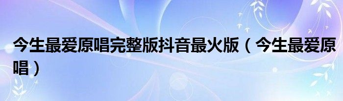 大家好,小联来为大家解答以上的问题。今生最爱原唱完整版抖音最火版,今生最爱原唱这个很多人还不知道,现在让我们一起来看看吧!