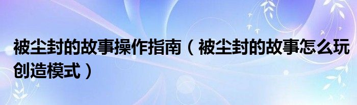 被尘封的故事操作指南(被尘封的故事怎么玩创造模式)