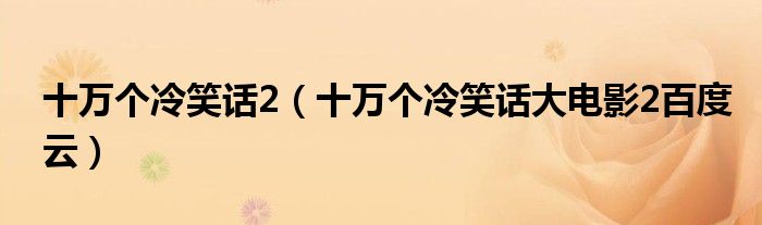 关于十万个冷笑话2,十万个冷笑话大电影2百度云这个很多人还不知道,今天菲菲来为大家解答以上的问题,现在让我们一起来看看吧!