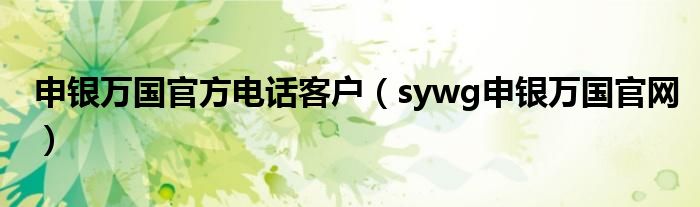 大家好,小联来为大家解答以上的问题。申银万国官方电话客户,sywg申银万国官网这个很多人还不知道,现在让我们一起来看看吧!