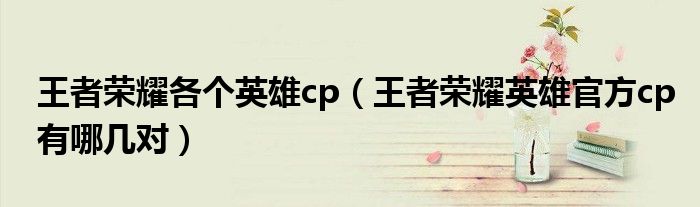 大家好,小夏来为大家讲解下。王者荣耀各个英雄cp,王者荣耀英雄官方cp有哪几对很多人还不知道,现在让我们一起来看看吧!