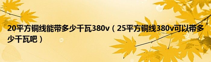 大家好,小联来为大家解答以上的问题。20平方铜线能带多少千瓦380v,25平方铜线380v可以带多少千瓦吧这个很多人还不知道,现在让我们一起来看看吧!