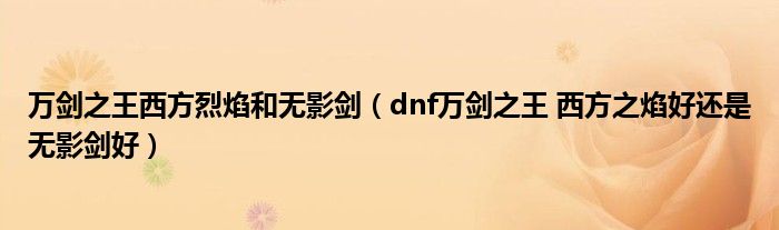 1、dnf无影剑比万剑之王-西方之焰好。