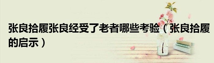 大家好,小联来为大家解答以上的问题。张良拾履张良经受了老者哪些考验,张良拾履的启示这个很多人还不知道,现在让我们一起来看看吧!