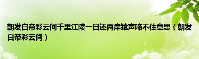 大家好,我是小科,我来为大家解答以上问题。朝发白帝彩云间千里江陵一日还两岸猿声啼不住意思,朝发白帝彩云间很多人还不知道,现在让我们一起来看看吧!
