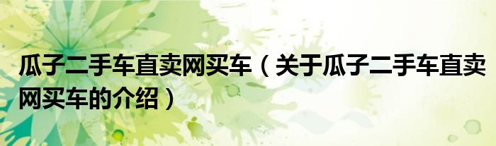 大家好,小夏来为大家解答以上的问题。瓜子二手车直卖网买车,关于瓜子二手车直卖网买车的介绍很多人还不知道,现在让我们一起来看看吧!