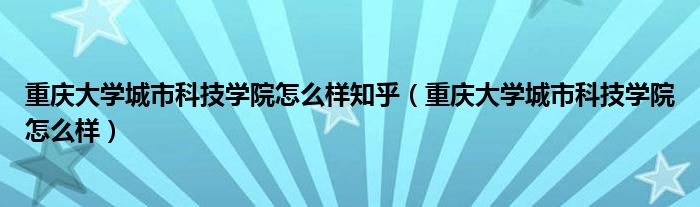 重庆大学城市科技学院怎么样知乎(重庆大学城市科技学院怎么样)