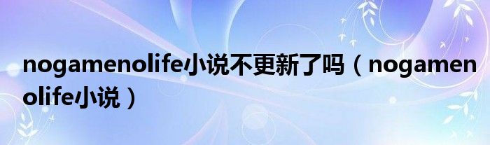 nogamenolife小说不更新了吗(nogamenolife小说)