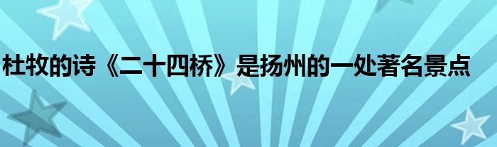 大家好,小联来为大家解答以上的问题。杜牧的诗《二十四桥》是扬州的一处著名景点这个很多人还不知道,现在让我们一起来看看吧!