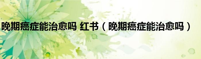 大家好,乐天来为大家解答以下的问题,晚期癌症能治愈吗 红书,晚期癌症能治愈吗很多人还不知道,现在让我们一起来看看吧!