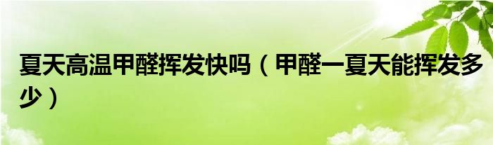 大家好,小晋来为大家解答以下问题,关于夏天高温甲醛挥发快吗,甲醛一夏天能挥发多少很多人还不知道,今天让我们一起来看看吧!