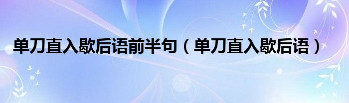 大家好,小晋来为大家解答以下问题,关于单刀直入歇后语前半句,单刀直入歇后语很多人还不知道,今天让我们一起来看看吧!