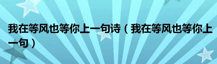 大家好,小晋来为大家解答以下问题,关于我在等风也等你上一句诗,我在等风也等你上一句很多人还不知道,今天让我们一起来看看吧!