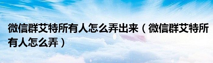 大家好,小晋来为大家解答以下问题,关于微信群艾特所有人怎么弄出来,微信群艾特所有人怎么弄很多人还不知道,今天让我们一起来看看吧!