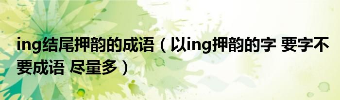 关于ing结尾押韵的成语,以ing押韵的字 要字不要成语 尽量多这个很多人还不知道,今天菲菲来为大家解答以上的问题,现在让我们一起来看看吧!