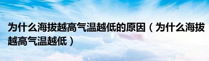 关于为什么海拔越高气温越低的原因,为什么海拔越高气温越低这个很多人还不知道,今天菲菲来为大家解答以上的问题,现在让我们一起来看看吧!