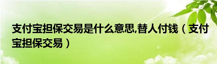 大家好,来宝来为大家解答以下问题,支付宝担保交易是什么意思,替人付钱,支付宝担保交易很多人还不知道,今天让我们一起来看看吧!
